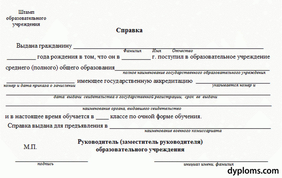 На нашем сайте также доступна справка в военкомат